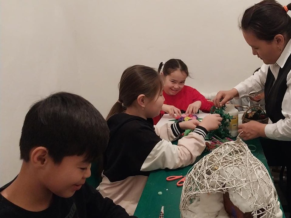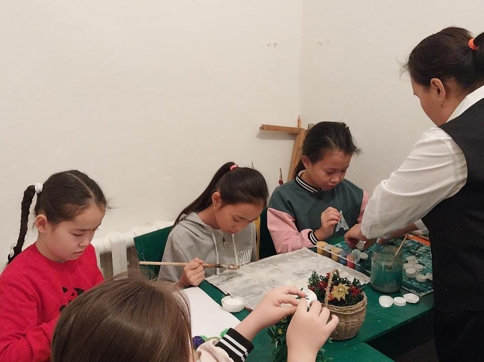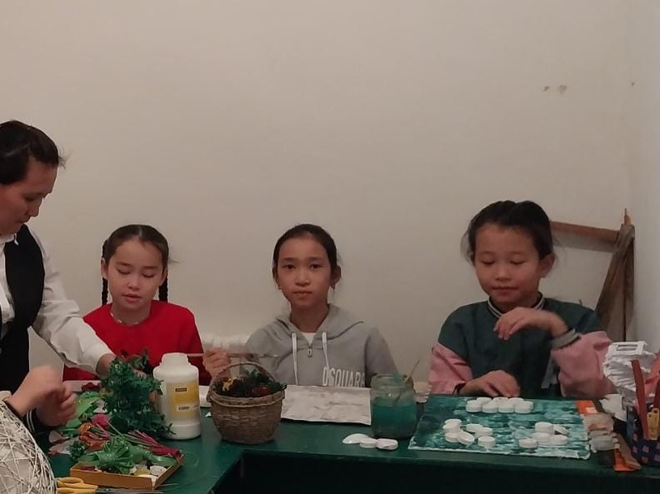 "Қолданбалы-декоративті өнер" үйірмесінің мүшелері сабақ барысында