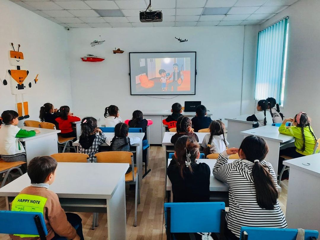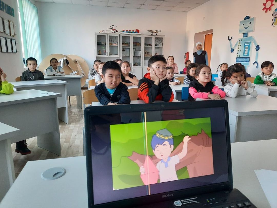 үйірме мүшелерін Отансүйгіштікке, адамгершілікке, рәміздерді құрметтеуге тәрбиелеу мақсатында үйірме мүшелеріне "Көк ту және достар" атты мультфильм көрсетілді.