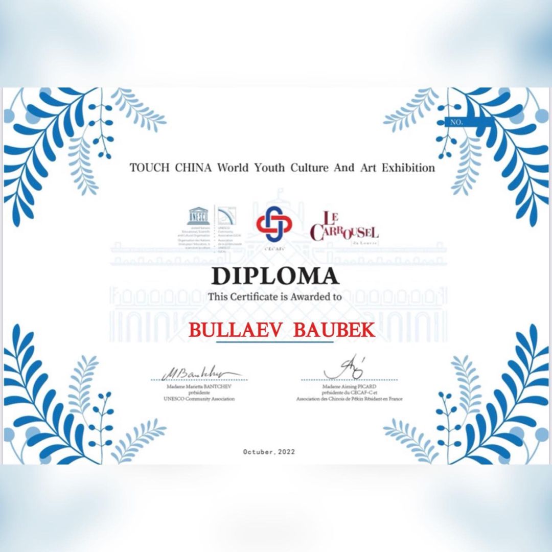 Қазақстан Суретшілер Одағының мүшесі, кескіндемеші,атақты суретші Қазақстан балалар көрмесінің кураторы Болат Хамзин жетекшілік еткен, балалар шығармашылығын шетелдерде насихаттау мақсатында, әлемдік деңгейде өткен, Париждегі Лувр музейінде «Бүкіл әлемде – бейбітшілік» ұранымен «Ұлы Жібек жолы» көшпелі көрмесінде Орталығымыздың "Дизайн" үйірмесінің жетекшісі ГҮЛДАНА СЕРІКҚЫЗЫМЕН үйірме мүшелері: